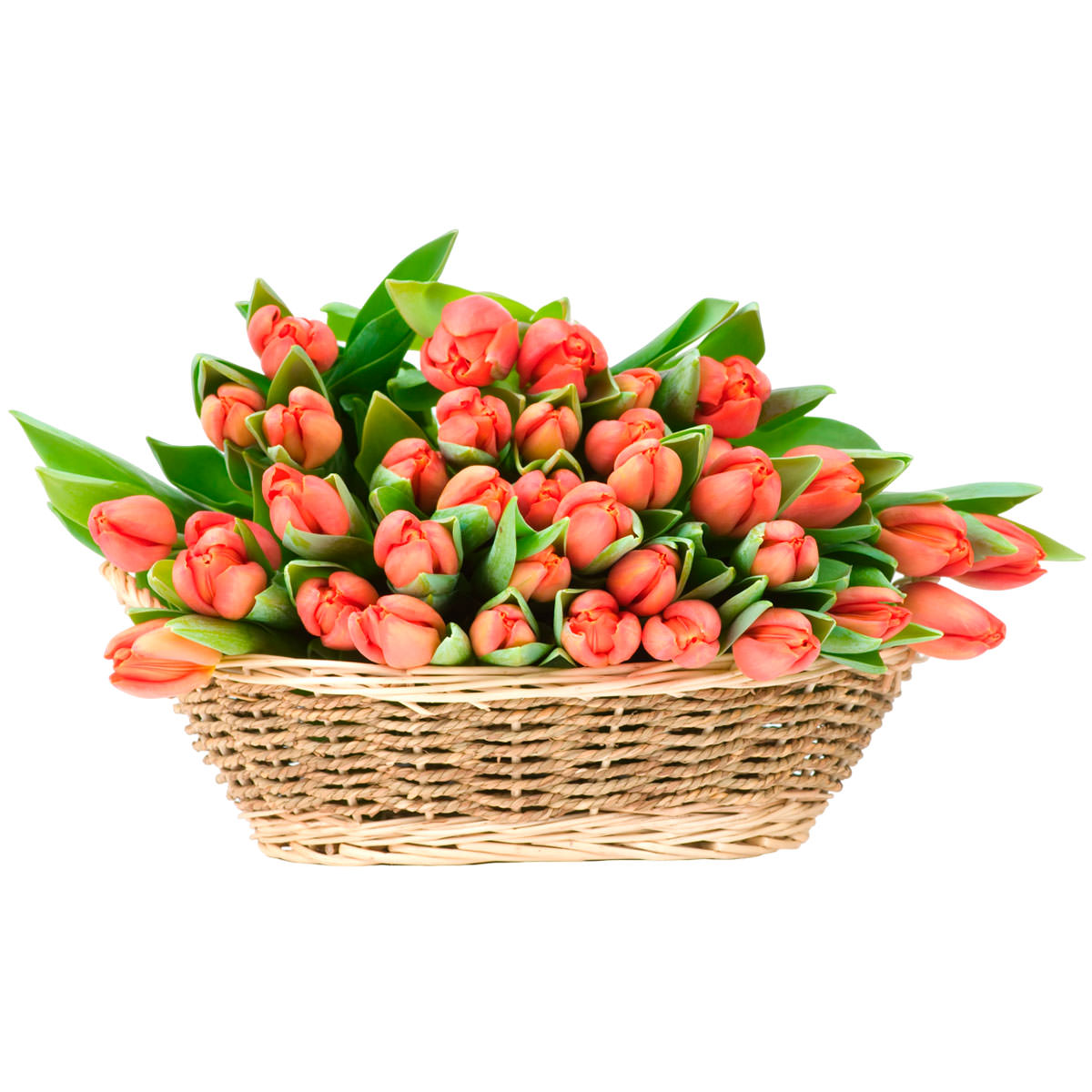 Тюльпан оранжевый. Упаковка (Корзина, оазис, ящик).